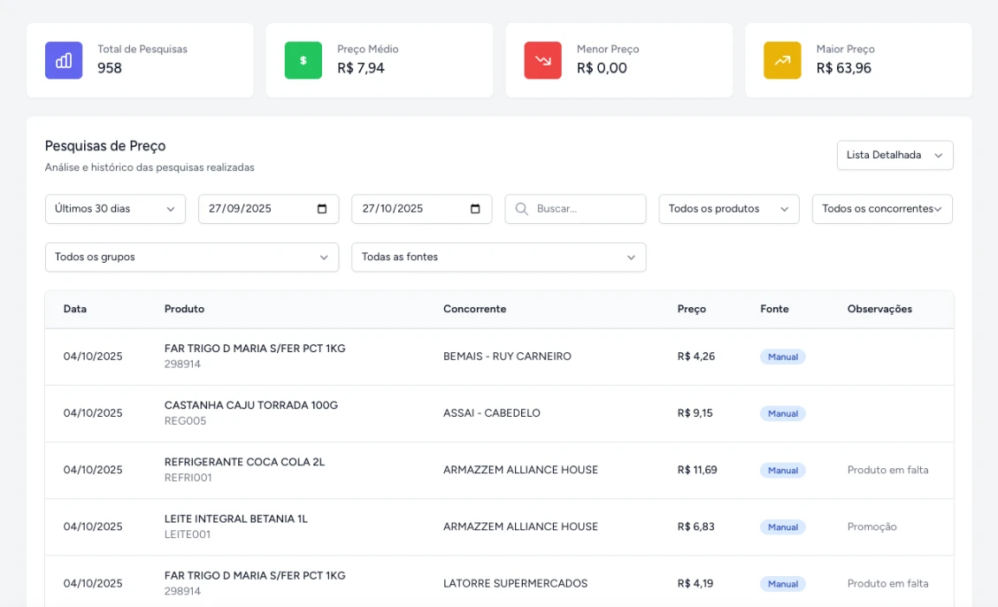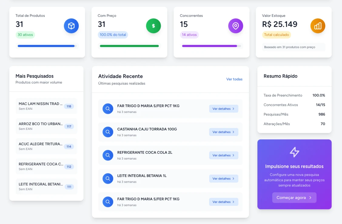 Monitore preços e promoções de concorrentes e marketplaces em tempo quase real.